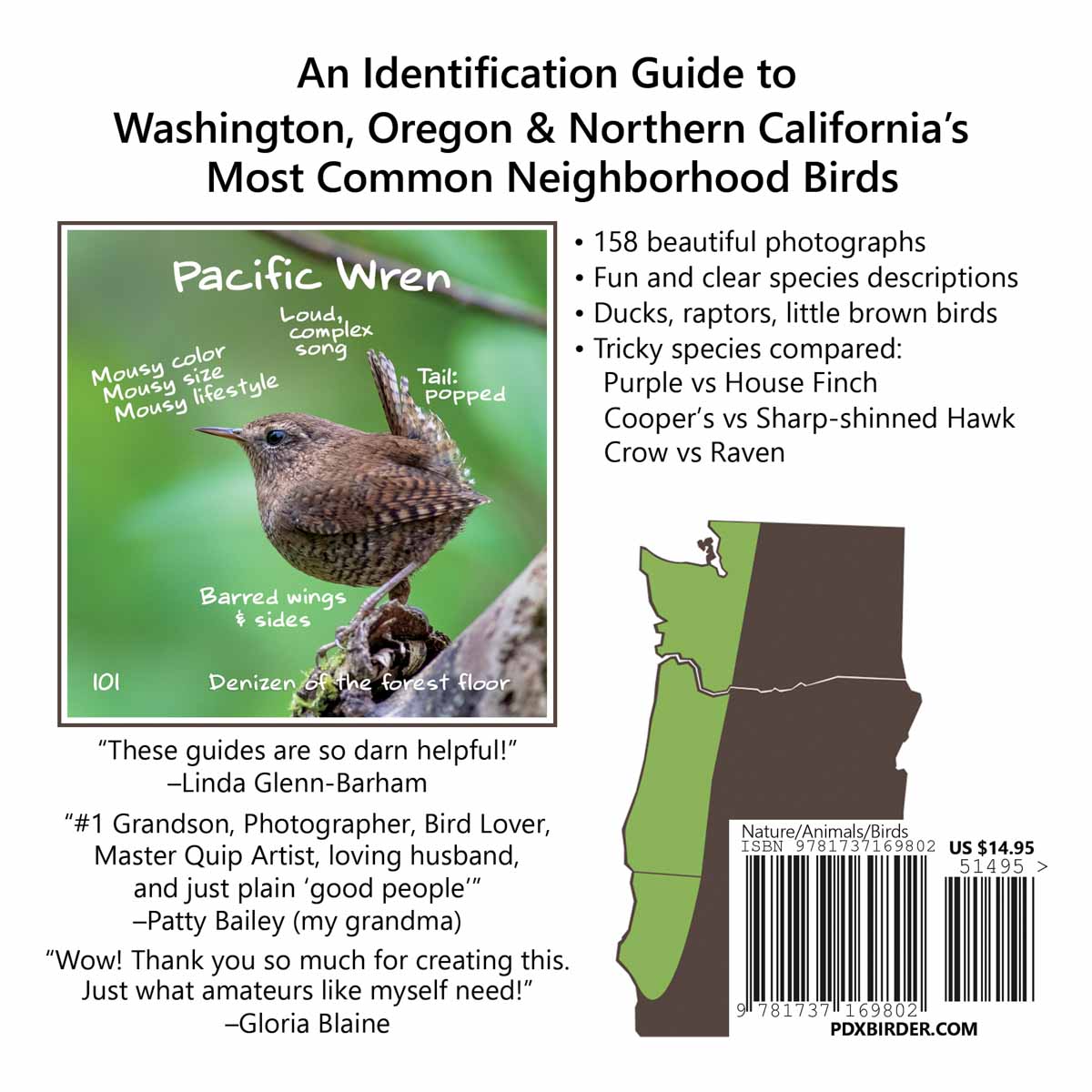A clear and concise bird guide to West Coast birds. Learn to easily identify 110 of our most common neighborhood birds with 158 beautiful photos and fun, easy-to-understand descriptions.